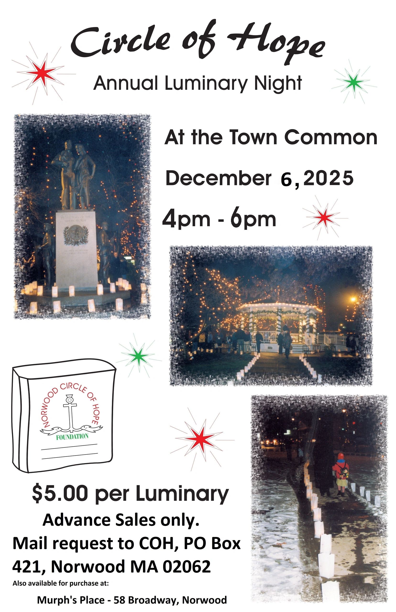 Join us on the Town Common as we "light up the Circle of Hope" for our 23rd Annual Luminary Night.